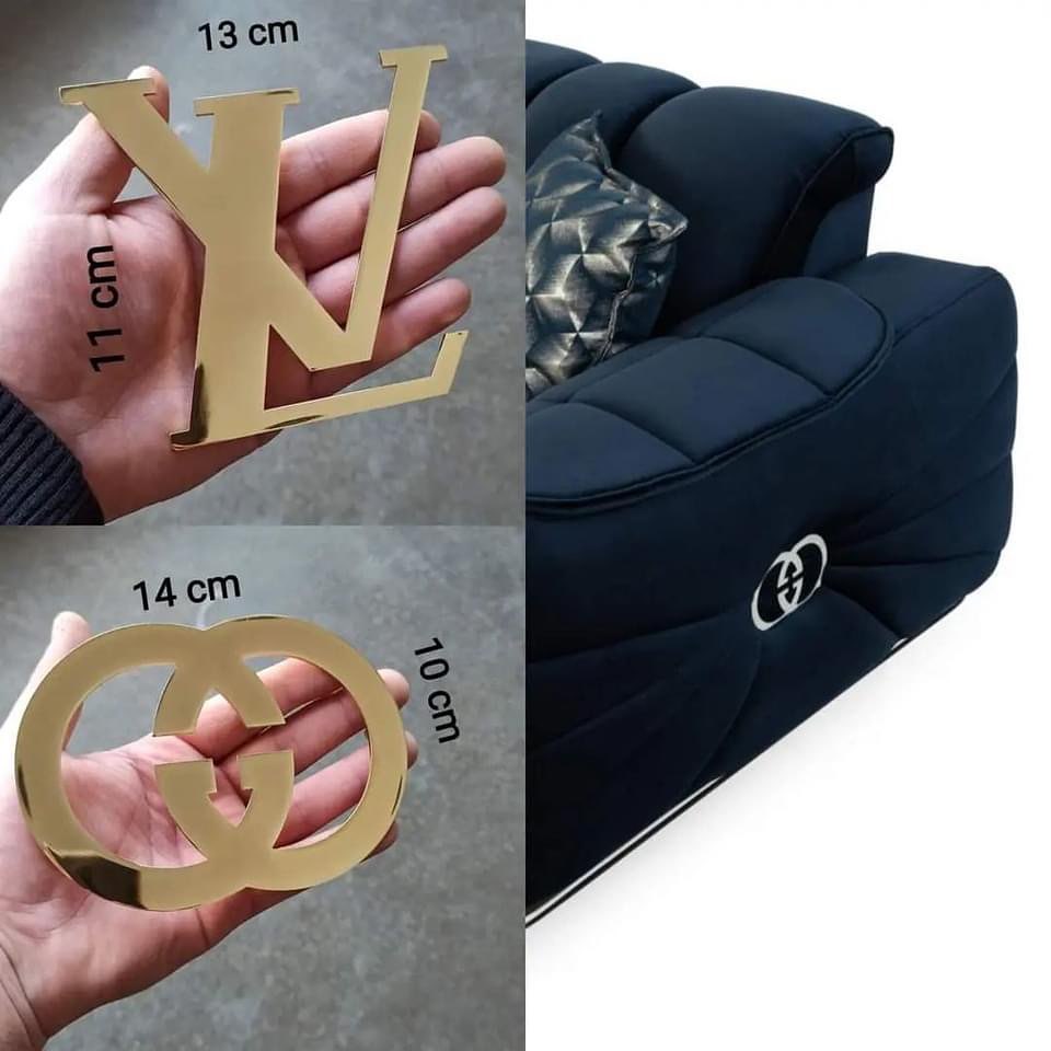 Enhance your furniture with Furniture Decorative JT-051, a set of premium brass embellishments featuring bold, logo-inspired designs. Perfect for a luxurious, modern touch to sofas and more.