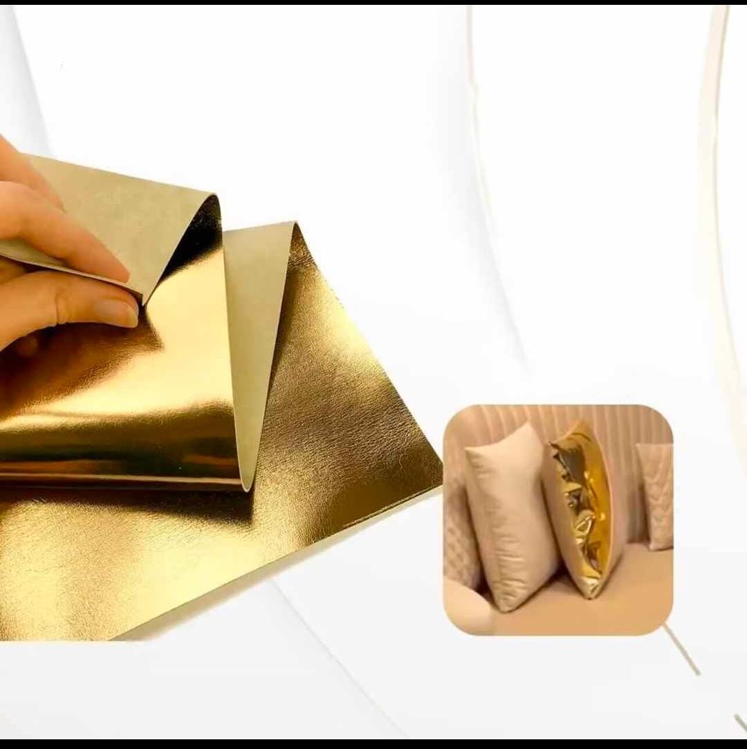 The JT-010 is a metallic gold sheet ideal for transforming pillows, furniture, and crafts. Its reflective, flexible design and easy application make it perfect for adding a luxurious touch to any DIY or upholstery project.