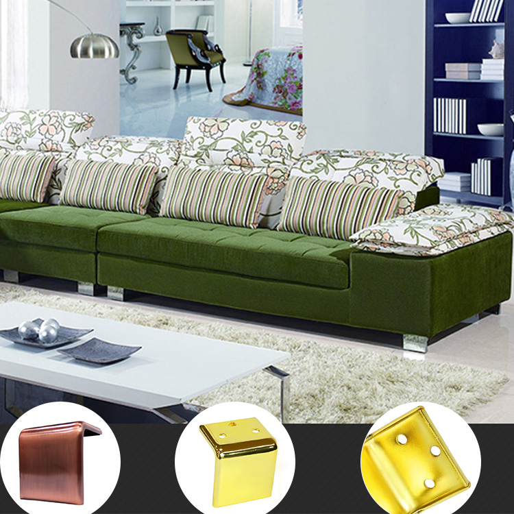 The JT-022 is a comfortable green sectional sofa with playful floral and striped pillows, customizable corner brackets (copper or gold), and sturdy metal legs—offering both durability and a vibrant pop of style.